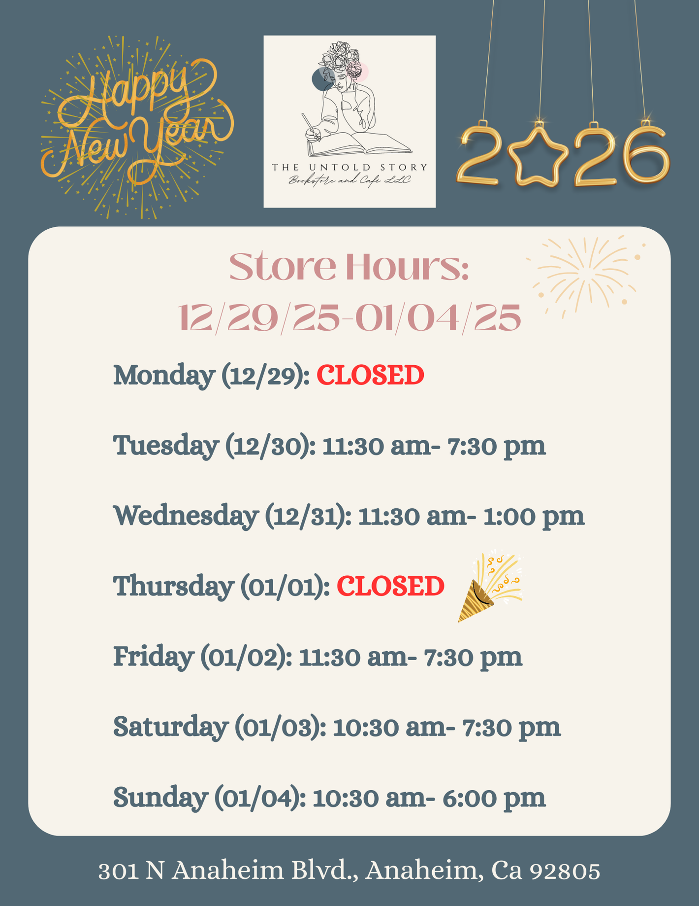 Thursday (01/01): CLOSED