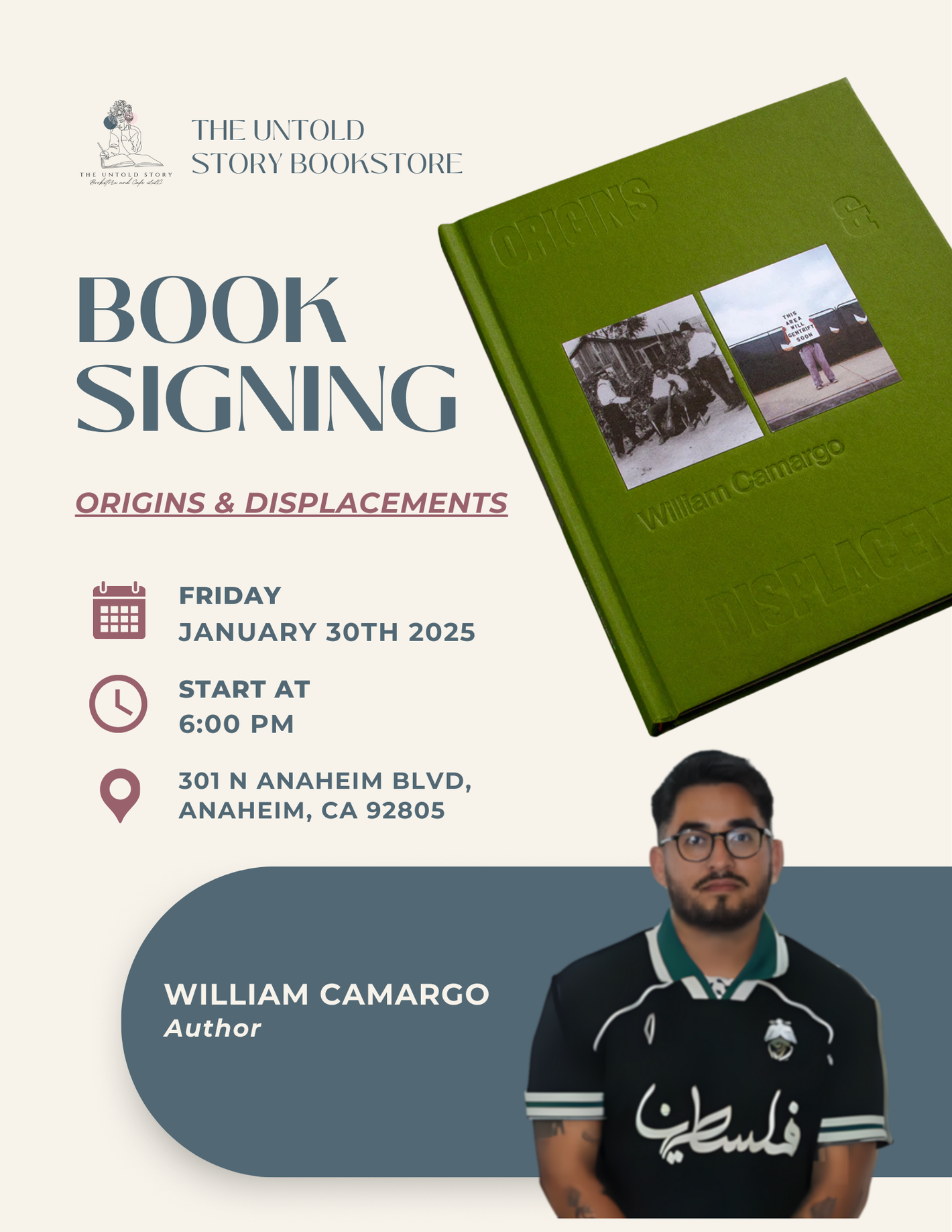 Join us for a book signing by William Camargo for his book Origins and Displacements.