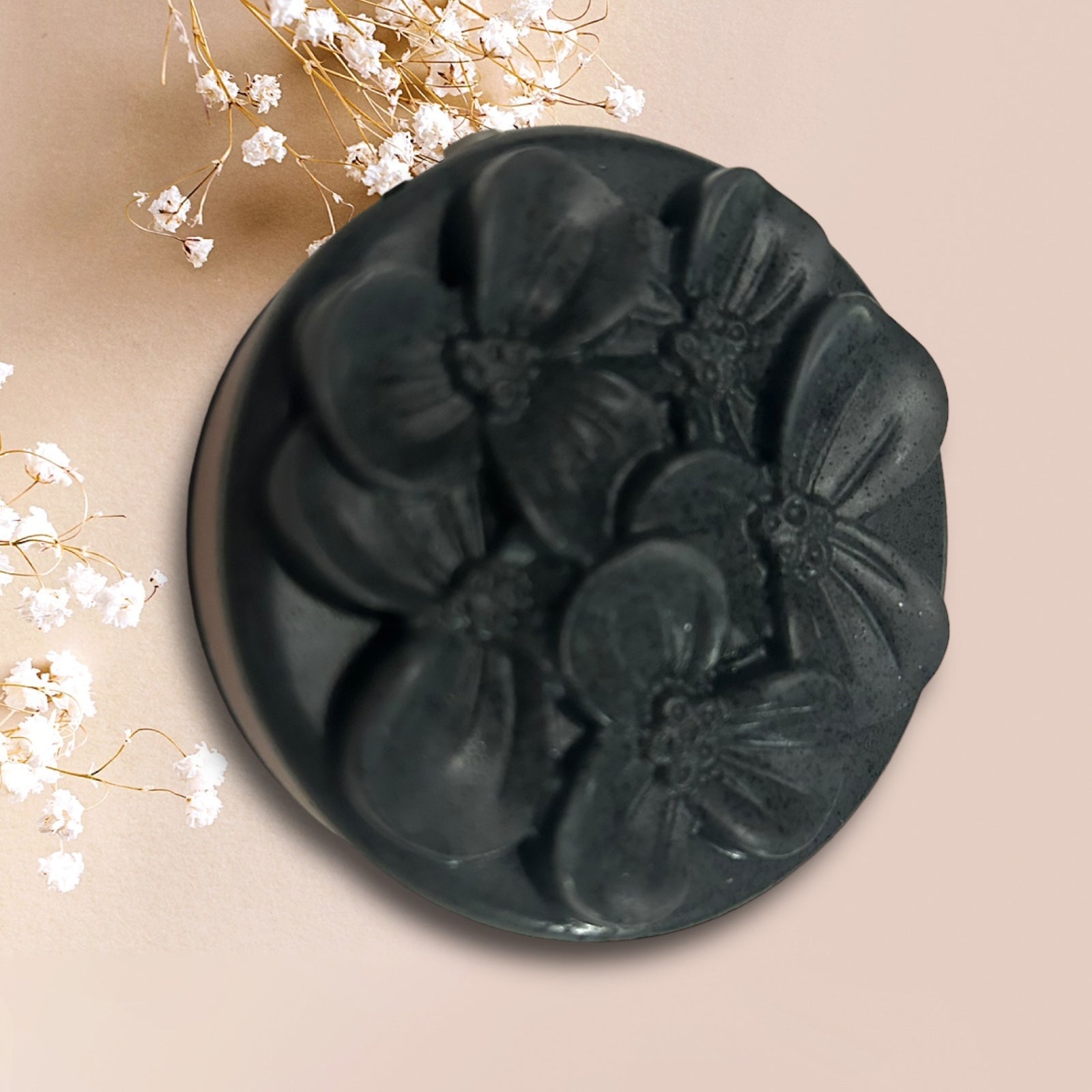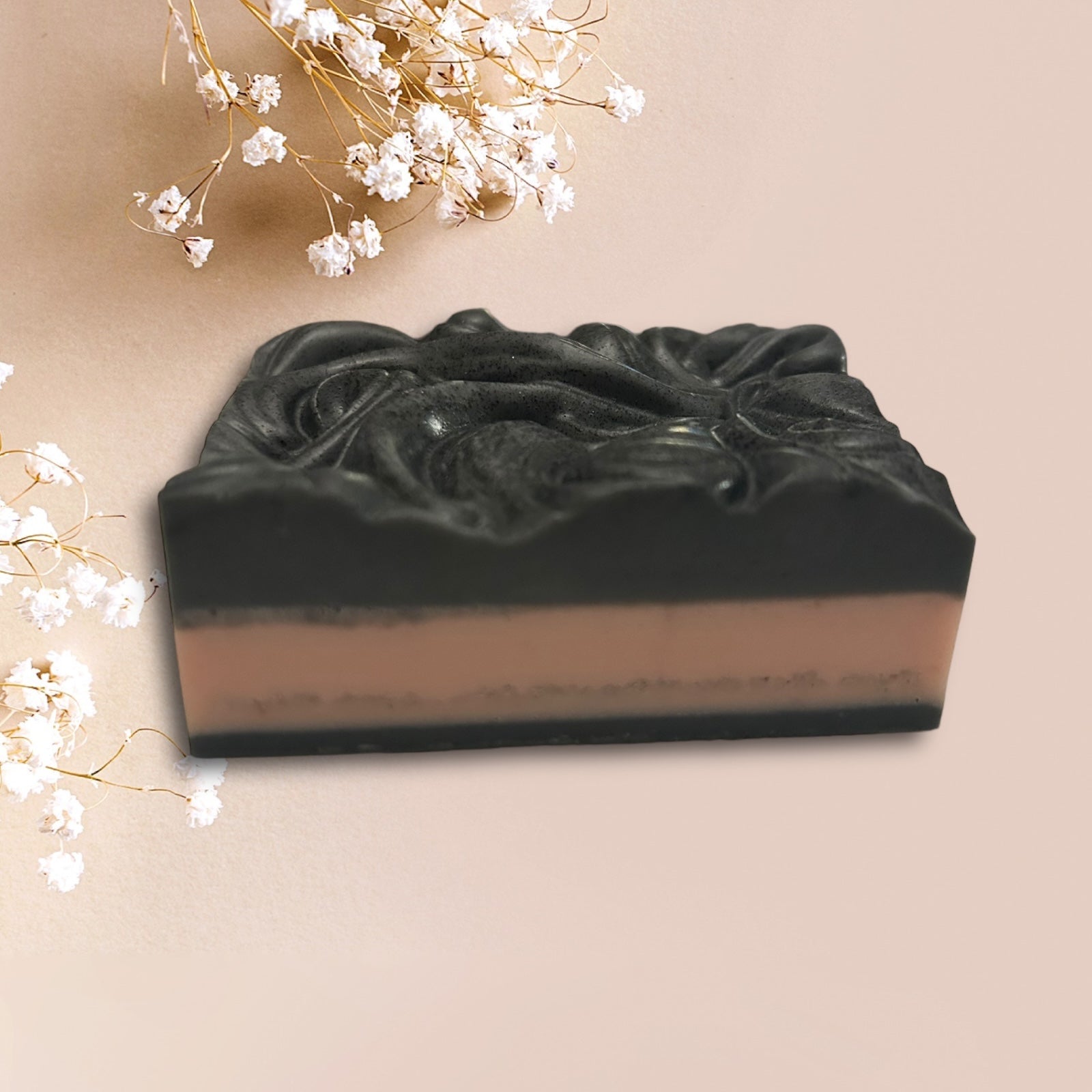 Beautiful presentation in a two-toned shea butter soap. Layers of activated charcoal and rose clay. Hints of frankincense and rose essential oils.