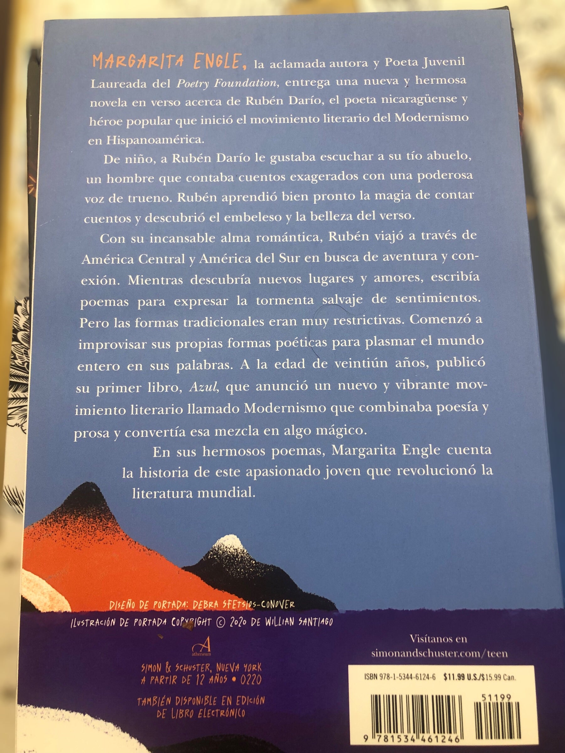 Margarita Engle, la aclamada autora y Poeta Juvenil Laureada del Poetry Foundation, entrega una nueva y hermosa novela en verso acerca de Rubén Darío, el poeta nicaragüense y héroe popular que inció el movimiento literario del Modernismo en Hispanoamérica.